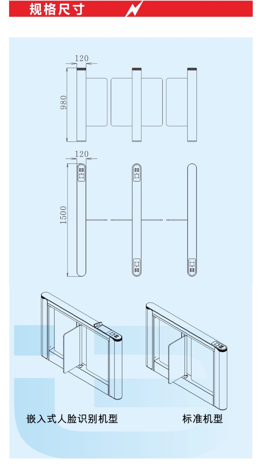 速通闸是人流通道的控制设备,用于人员出入口需要进行控制的地方,如饭堂宾馆,博物馆,体育馆,俱乐部,地铁,车站,码头等场所。速通闸的使用可以使人流有序的通过通道。摆闸与刷...