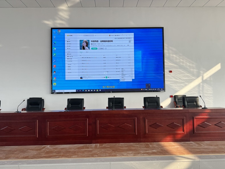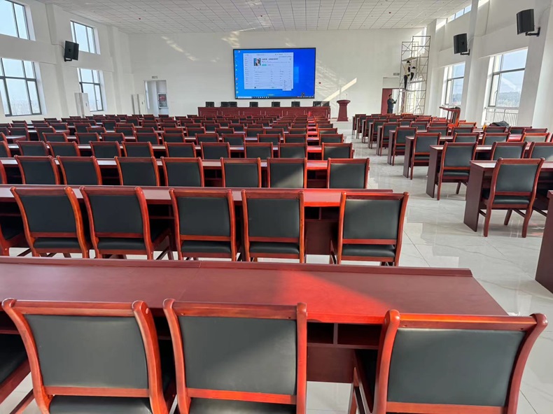 某单位需要建设一个能容纳500人的会议广播系统,该系统主要设计的内容有小间距LED全彩显示屏、大功率喇叭、会议话筒、调音台、视频会议摄像头、MCU等,该会议室面积有1200平米,我们安装了8只会议扩音喇叭,采用4台功放进行调节,大屏采用P1.8室内全彩LED显示屏采用封装方式为SMD表贴,一平方米有160000个像素点数,每个像素点之间的点间距为1.8mm;扫描方式为32扫.视频会议显示和会议扩声效果显著,完全优于客户的预期效果。