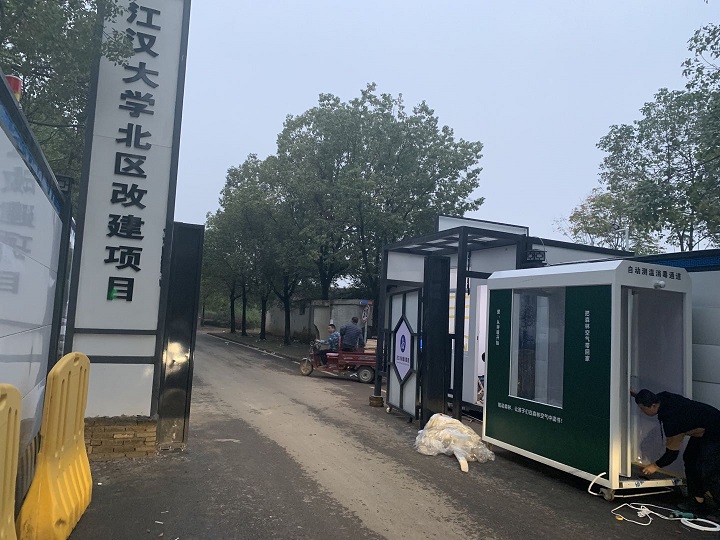 江汉大学是经中国教育部批准,由原江汉大学、华中理工大学汉口分校、武汉职工医学院、武汉教育学院等高校合并组建的一所公立的综合性普通高等学校。学校实行湖北省、武汉市共建,以武汉市为主的办学体制,是省、市重点建设大学。由于建校时间长,一些基础设施陈旧,现对江汉大学北区进行改造。我们此次对未该改造工地提供工地管理系统及疫情查杀系统设备,给工地工人和在校师生的提供技防安全。